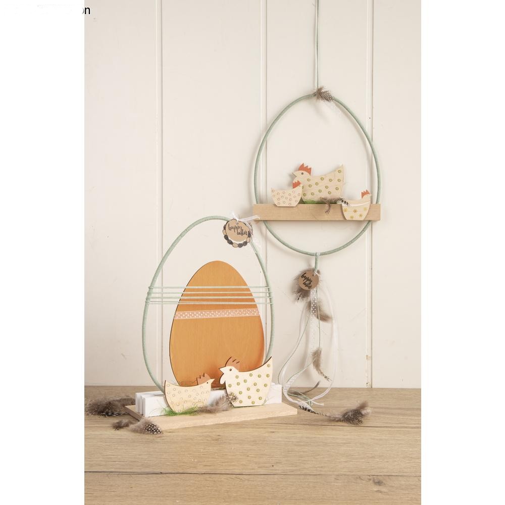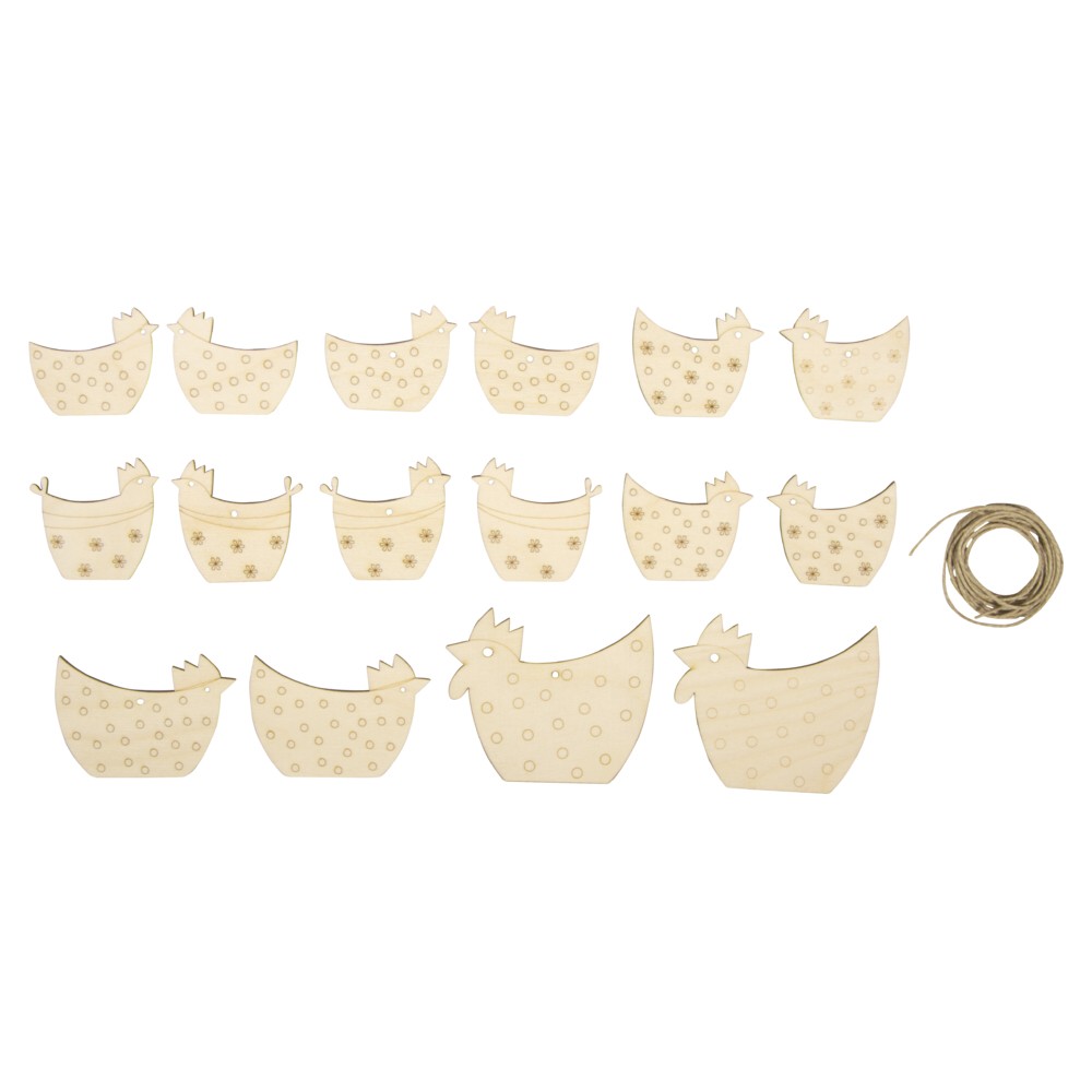 Opis: Kury, koguty ze sklejki + sznurek konopny