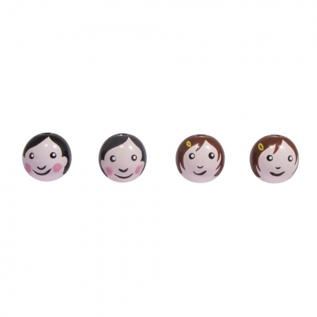 wykonane z drewna z ręcznie malowaną buźką i włosami. Uśmiechy na twarzach kobiecej i męskiej tworzą miłą atmosferę. Doskonałe w lalkarstwie do tworzenia kukiełek występujących w teatrzyku lalek. Przelotowy otwór o średnicy 4 mm umożliwia łatwe mocowanie główki do lalek zarówno do korpusu, jaki i zawieszenie całej kukiełki na sznurku za pomocą karabińczyka .