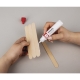 Glue fix pen — przezroczysty, szybki klej na bazie wody do klejenia różnych materiałów. Dzięki cienkiej końcówce umożliwia precyzyjną aplikację. Idealnie nadaje się do łączenia drewna w połączeniu z innymi materiałami, takimi jak korek, skóra, szkło, karton, tkanina i inne. Szybki klej jest nietoksyczny, nie zawiera rozpuszczalników, wypełniaczy i dodatków formaldehydowych.