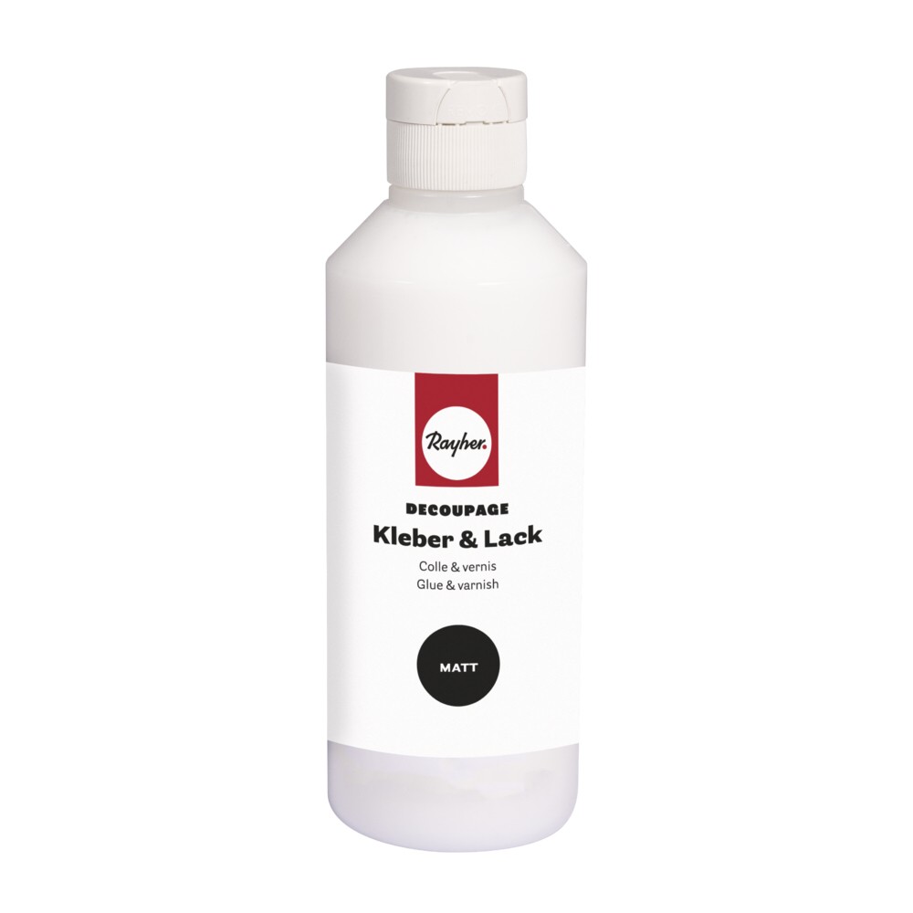 Klej z lakierem decoupage matowy zapewnia matowe wykończenie powierzchni i doskonałą ochronę projektu wykonanego na drewnie, papier-mâché, kartonie, terakocie, ceramice, płótnie, szkle, tkaninach i in. Idealny w decoupage, kolażu i technikach mieszanych. Klej z lakierem ma biały kolor, a po wyschnięciu staje się przezroczysty. Powierzchniowo wysycha po 20 minutach a całkowicie w ciągu 24 godz. Dostępny również w opakowaniu 80 ml.