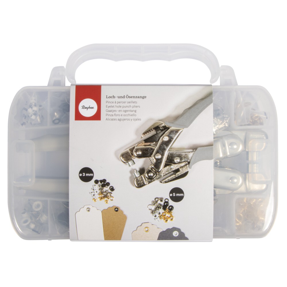 Narzędzie do nitowania scrapbooking bez większego wysiłku wycina precyzyjne otwory i tworzy oczka w wielu materiałach, np.: papier do 500 g, skóra, tkanina lub folia. Idealne do kreatywnych projektów DIY. Poręczne szczypce do przebijania otworów oraz zagniatania nitów o średnicy 3 i 5 mm są zapakowane w wytrzymałe plastikowe opakowanie umożliwiające bezpieczne przechowywanie. W zestawie narzędzia do nitowania scrapbooking znajduje się 160 nitów oczek 80 szt. 3 mm i 80 szt. 5 mm w 4 różnych kolorach (biały, czarny, srebrny, złoty).
