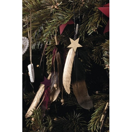 Dekoracyjne pióra o długości 15-20 cm w dolnej części czarne (ok. 1/3 długości), przechodzące w kolor złoty, a następnie w srebrny. Naturalne piórka ozdobne są idealne do tworzenia łapaczy snów oraz w innych kreatywnych projektach np. jako nietuzinkowa dekoracja choinki lub opakowania prezentu.
