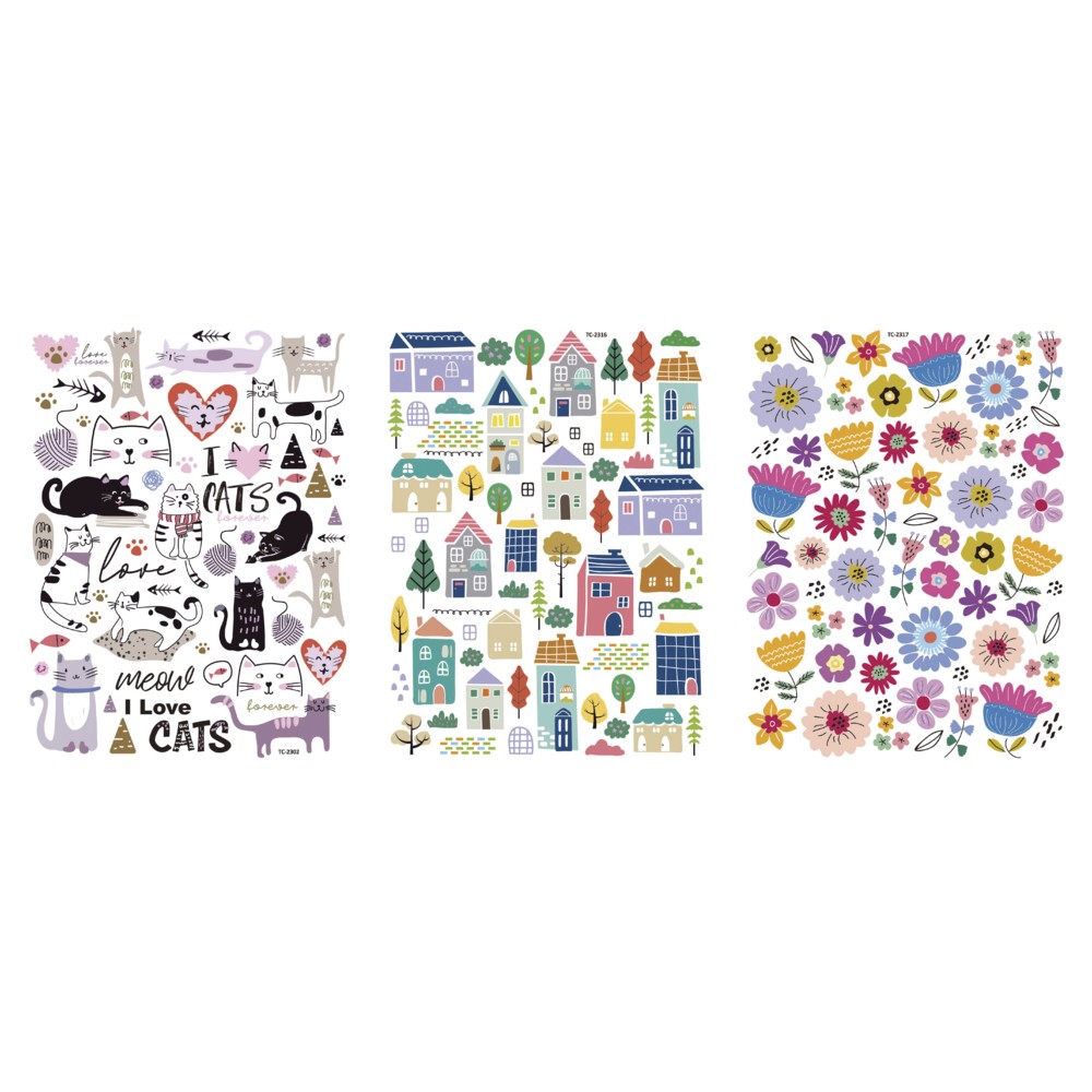 Opis: Naklejki transferowe Koty, Domy, Kwiaty