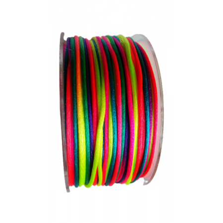 Sznurek satynowy 2 mm multikolor do tworzenia bransoletek makram i opasek w technice kumihimo.Sznurek atłasowy różnokolowy 2 mm do dekracji form styropianowych pudełek drewnianych oraz nawlekania koralików w beadingu.