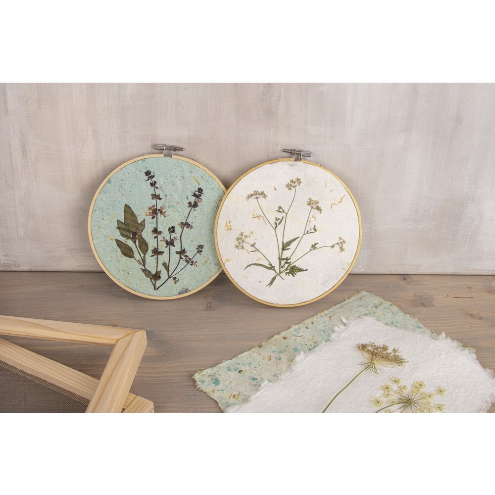 Tamborki drewniane jako ramki do kwiatów suszonych w prasie do suszenia roślin