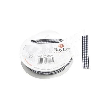 Wstążka w kratkę, czarna, 9,5 mm, rolka 10 m [55-408-01]