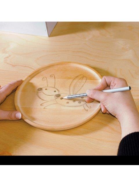 Wzory do wypalania w drewnie możemy znaleźć w Internecie, skopiować z ilustracji książkowych lub wykorzystać stemple silikonowe albo pieczątki gumowe odciśnięte na dekorowanej powierzchni. W zależności od wielkości motywu dobierzemy odpowiedniej grubości końcówkę do wypalania.